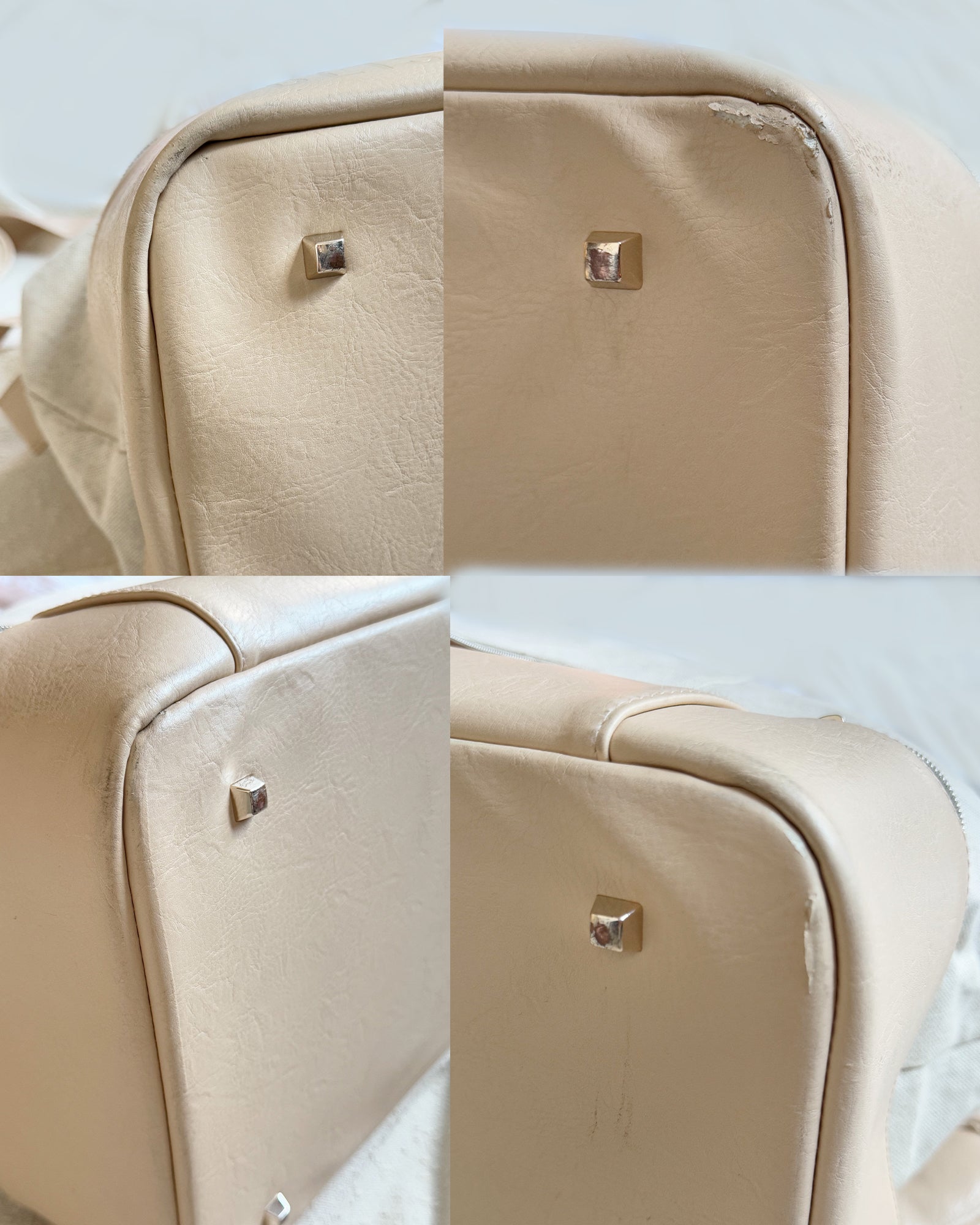 o This item is in excellent pre-owned condition, with a small interior stain in lower compartment and minor exterior wear of same compartment (see photos). Scuffs along the exterior side edges of the bottom are subtle and not fully visible in images. The price accounts for these flaws, the item's larger size, and higher shipping costs above our $10 flat rate.
