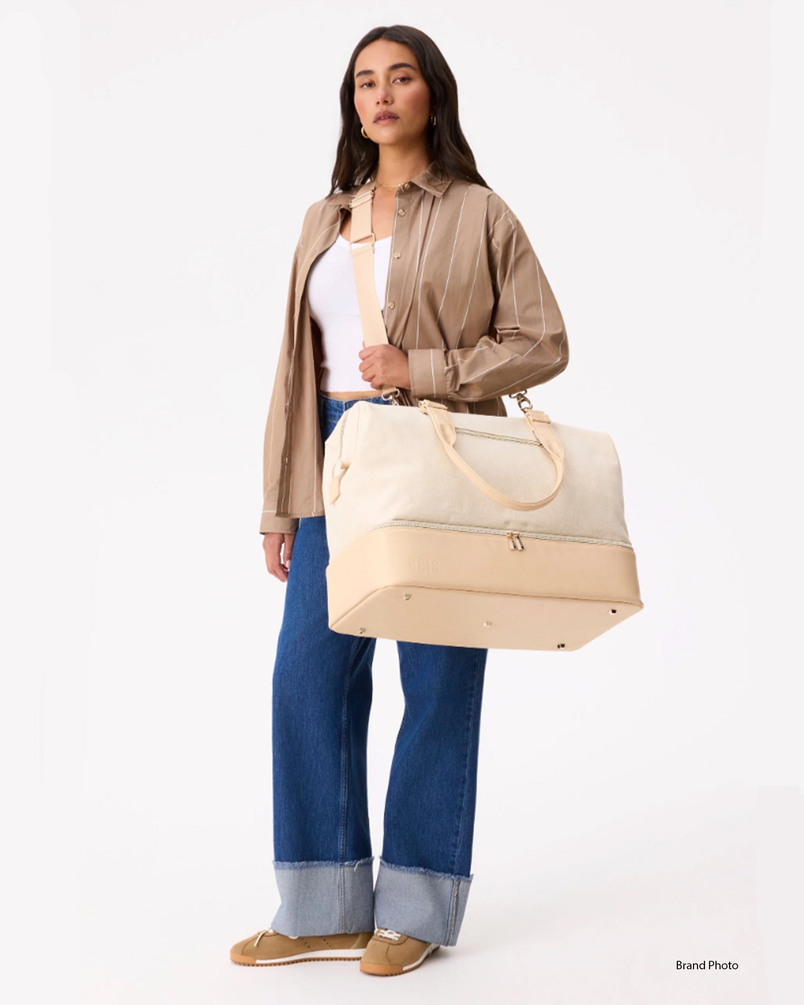 BÉIS says, “Perfect For: Overpackers, overhead bins and road trips. We designed this bag to take the hassle out of packing for the weekend or whichever days you’re away. Seriously, this tote’s easy-access opening makes getting everything in and out a breeze (no flashlight required). Plus, the bottom compartment is designed to keep your shoes, toiletries and travel essentials separate—you can even stash a hair dryer in there. Bonus points: there’s a zipper-pocket on the back that becomes a trolley sleeve so it fits over your luggage handle. Say Hello to your new favorite Carry-On Travel Bag.
