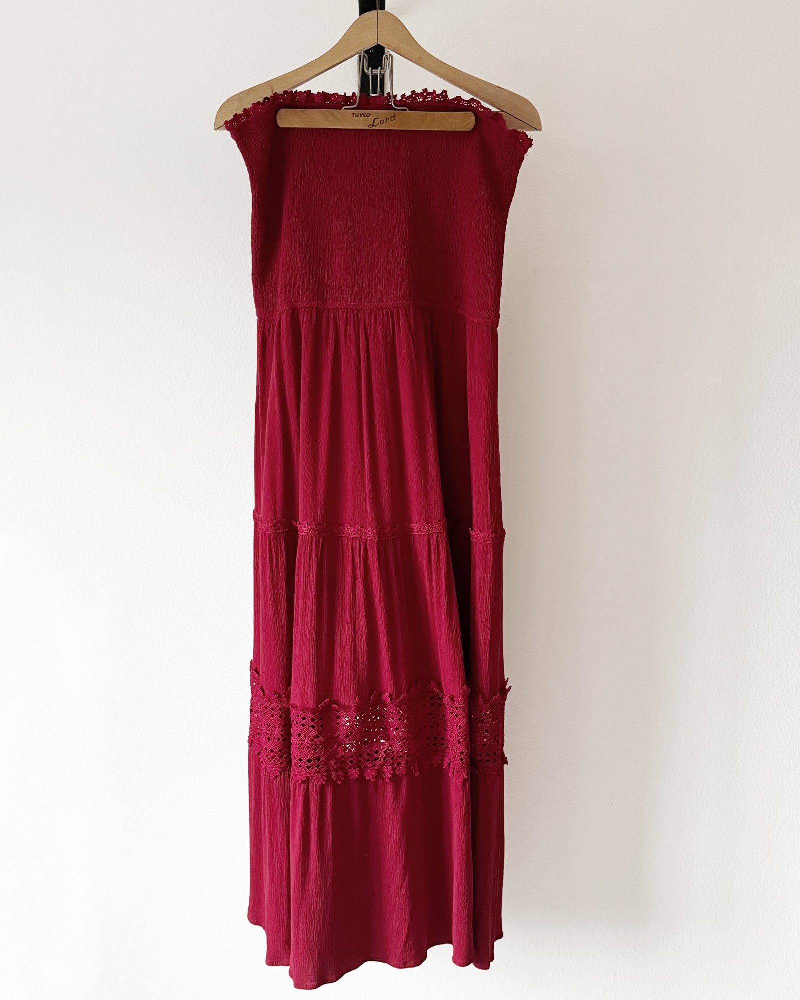 Bohemian Strapless Lace Trim Maxi Dress (XL)