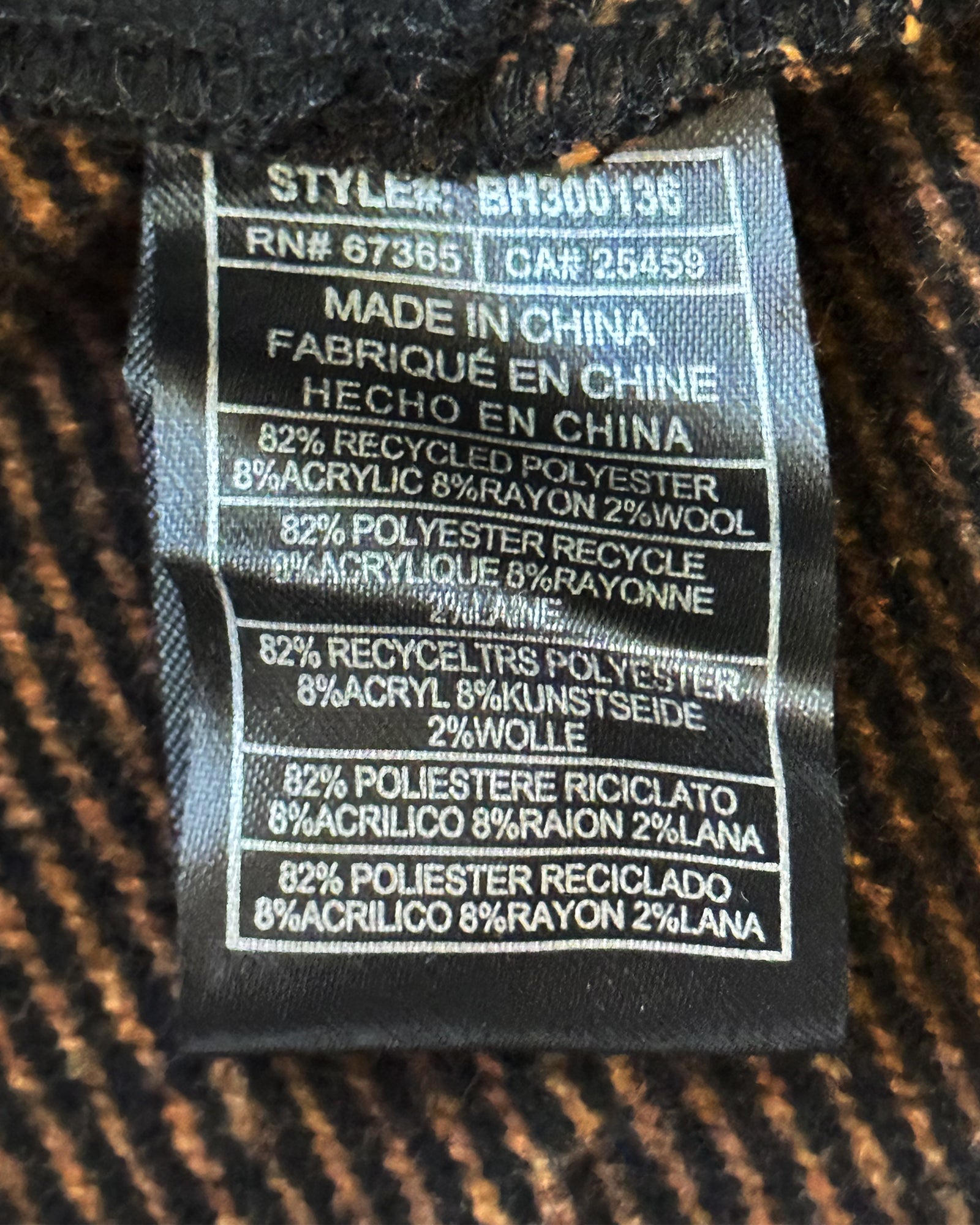 o Fabric: Recycled polyester, acrylic, and wool blend