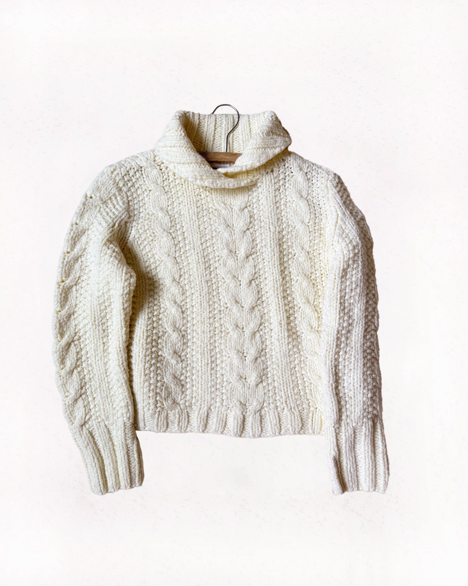This chunky cable-knit fisherman’s sweater not only keeps you warm in cold weather but also adds classic style with its intricate patterns and timeless design.