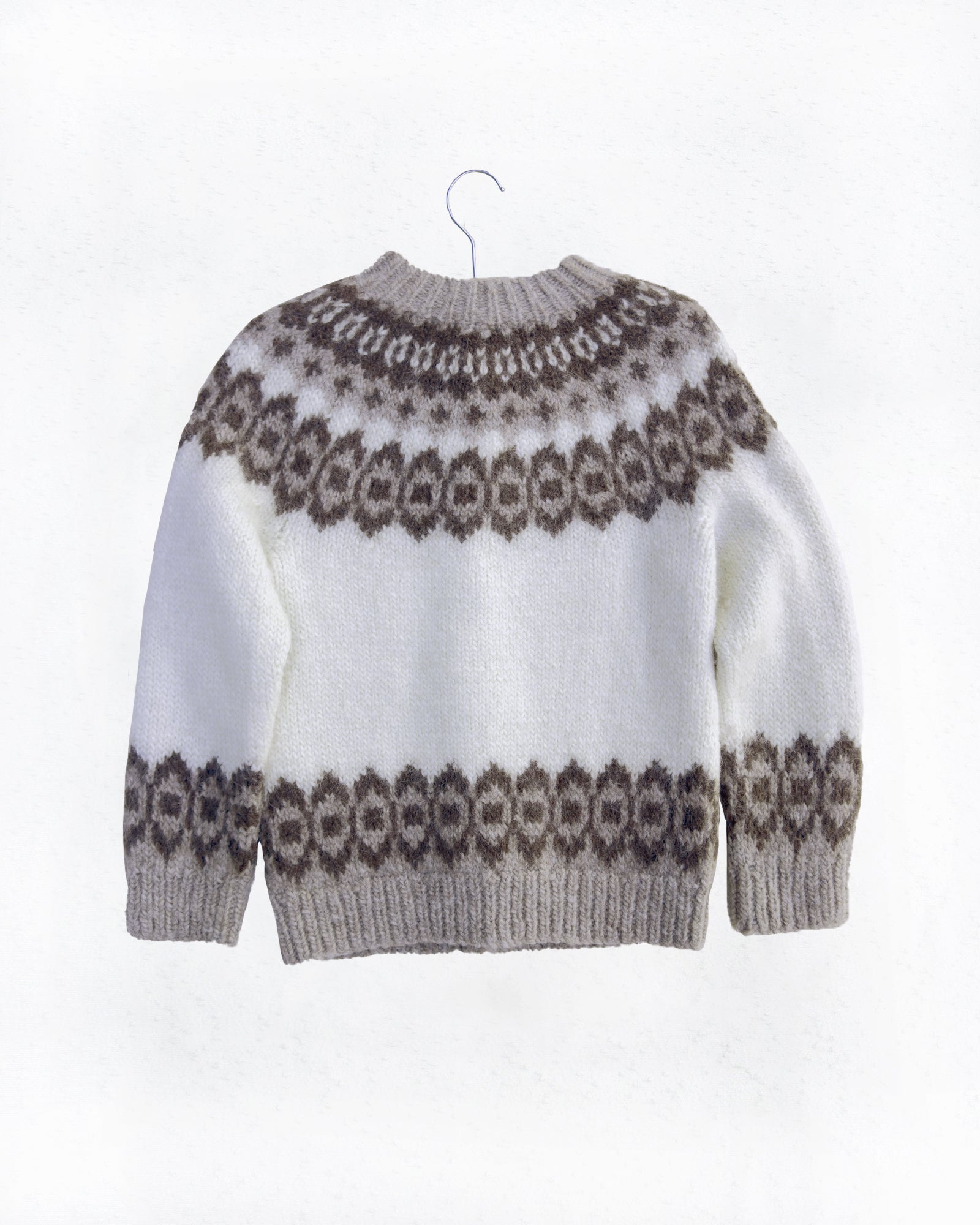 Experience the perfection of a stunning brown and cream Nordic Fair Isle sweater, where vintage charm intertwines seamlessly with meticulous craftsmanship, spun from fresh wool at the Lakeland Sheepskin Center in Great Britain. This exceptional garment is a rare treasure that's truly not to be missed.