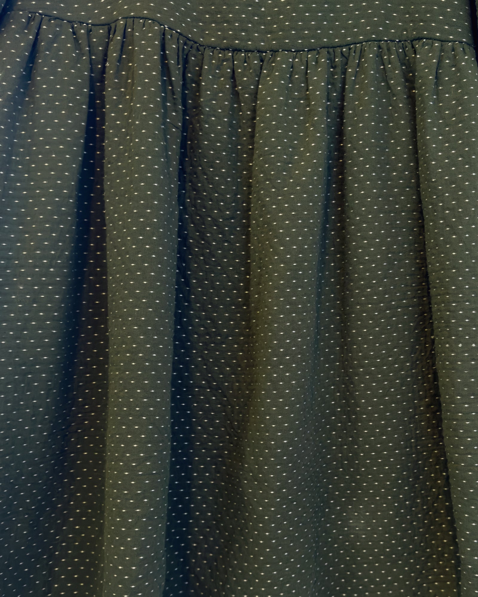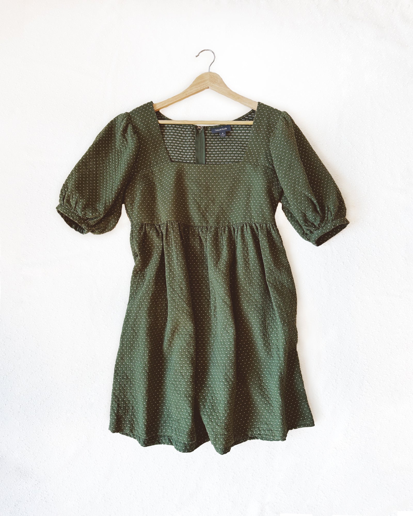 o    Good pre-loved condition with minor alterations to the sleeve circumference. Please review the photos and measurements for details. There is a small, lighter spot on the bottom front of the dress, which is not visible in the full photos but can be seen in the close-up image. The price has been reduced to reflect these modifications and blemish.