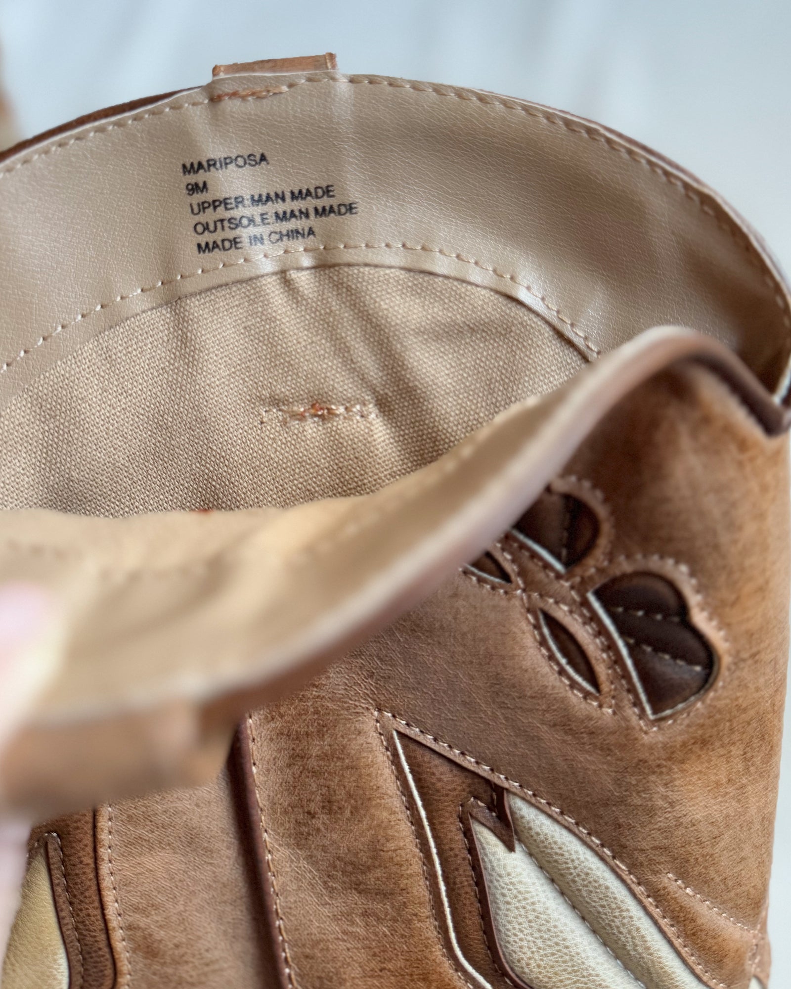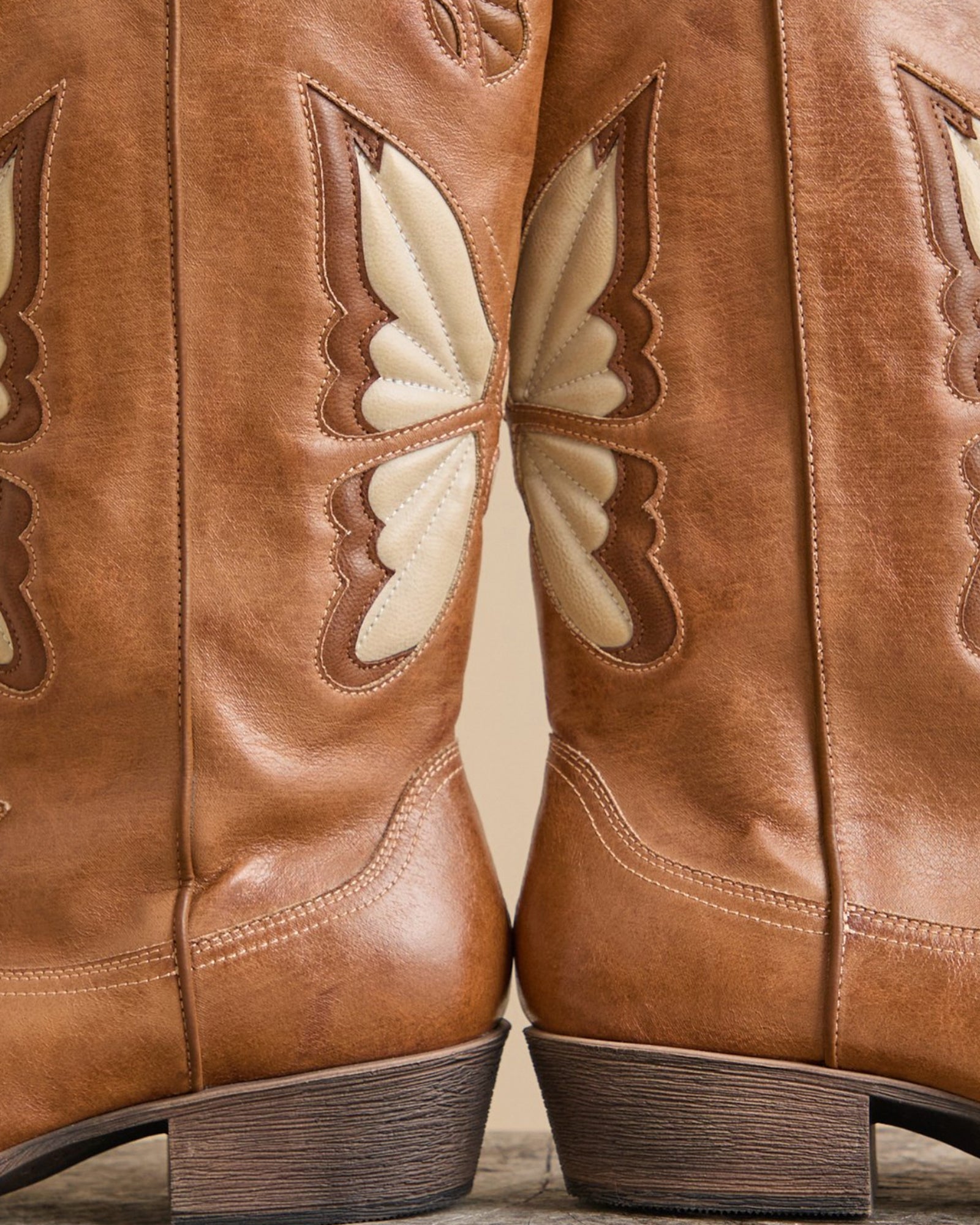 These unique boots are western-inspired with a delicate butterfly embroidery pattern. The stacked heel and pointed toe add a touch of femininity, while the durable construction ensures they'll last season after season. Sold out at Altar’d State.
