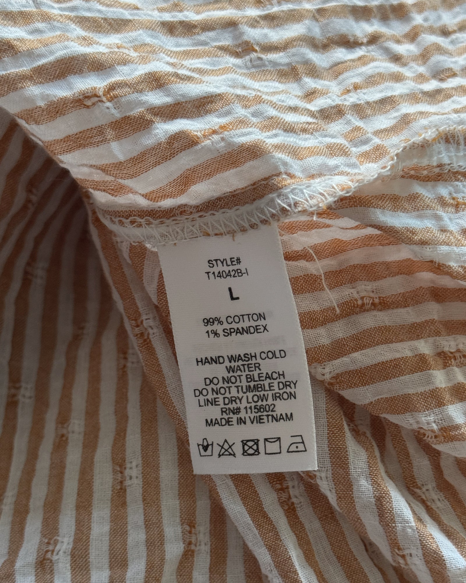 o Sleeve Length is 21” (measured rolled from neckline) The button holding the roll does not unbutton; to unroll sleeves, you must cut the stitching.